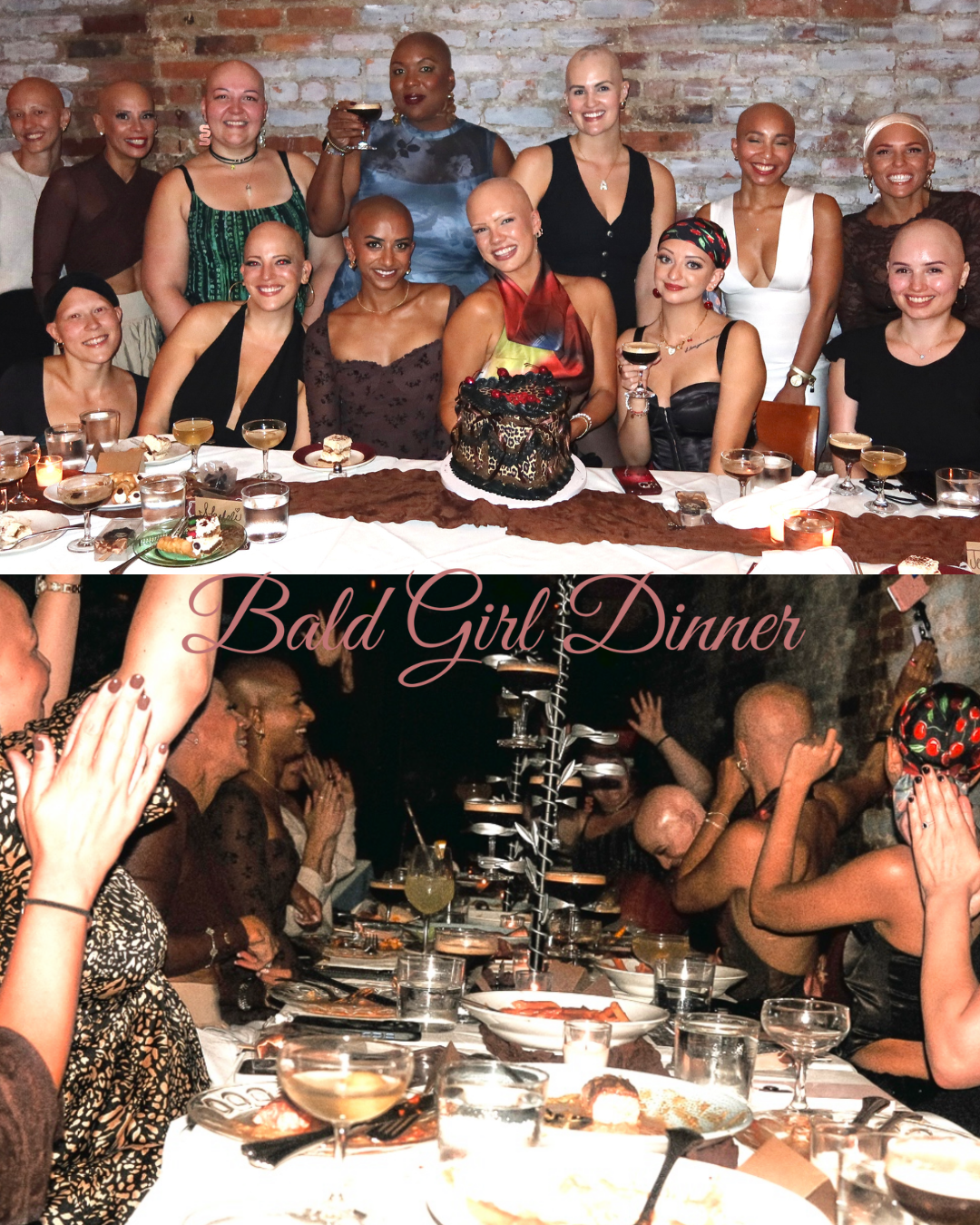 Luxury Dinner Parties for Women with Alopecia.Bald Girl Dinner is an empowering and stylish evening for women with alopecia to celebrate confidence and connection. Guests enjoy a beautifully curated dinner, signature cocktails, and the opportunity to mingle with like-minded women in a glamorous, uplifting atmosphere. Each table features exclusive promotions and thoughtfully curated goodie bags from beloved beauty and lifestyle brands, creating a night of elegance, camaraderie, and unforgettable experiences.